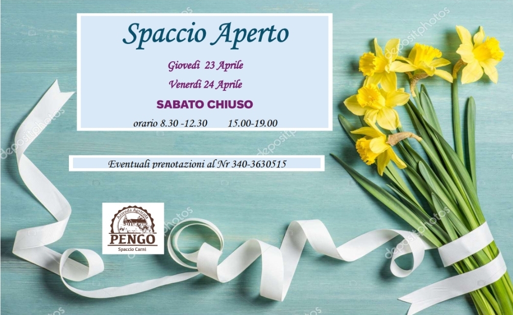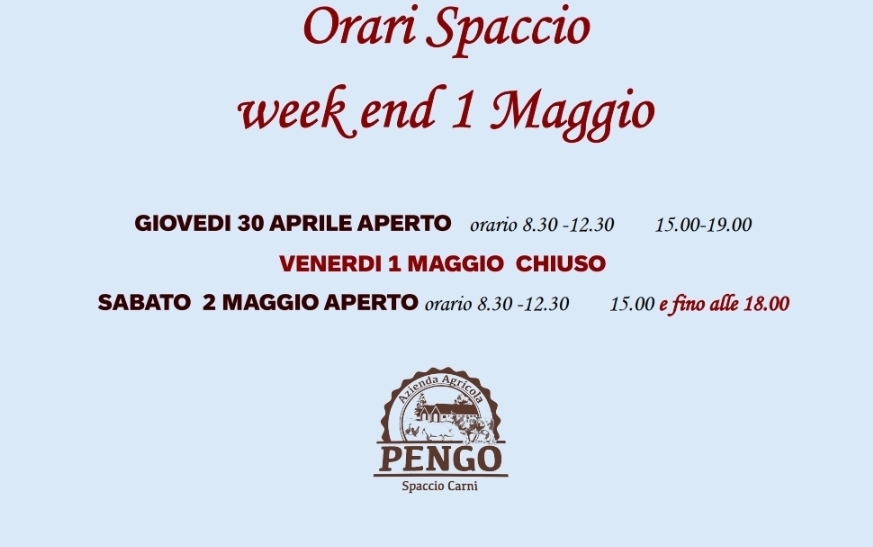 Spaccio carni aperto il Venerdi' mattina dalle 08:30 alle 12:30 e dalle 15 alle 19